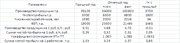 Результаты расчетов показывают что на данном предприятии имеются относительный перерасход переменной части ФЗП. Он произошёл в следствии того что темпы роста производительности труда рабочих сдельщиков были ниже темпов роста оплаты их труда. Перерасход з/п получился и в результате изменения структуры производства.