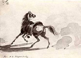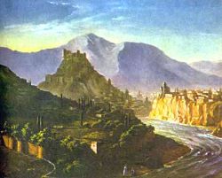 "С тех пор как выехал из России, - писал он Раевскому из Тифлиса, - поверишь ли, я находился до сих пор в беспрерывном странствовании, то на перекладной, то верхом; изъездил Линию всю вдоль, от Кизляра до Тамани, переехал горы, был в Шуше, в Кубе, в Шемахе, в Кахетии, одетый по-черкесски, с ружьем за плечами; ночевал в чистом поле, засыпал под крик шакалов, ел чурек, пил кахетинское даже... Я снял на скорую руку виды всех примечательных мест, которые посещал... Как перевалился через хребет в Грузию, так бросил тележку и стал ездить верхом; лазил на снеговую гору (имеется в виду Крестовая гора) на самый верх, что не совсем легко; оттуда видна половина Грузии, как на блюдечке".
