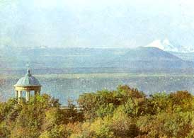 Сравнивая увиденное со своими детскими воспоминаниями, он был удивлен произошедшими здесь изменениями: в посёлке появились красивые здания, он был переименован в Пятигорск. Там, где располагался казачий пост, появилась изящная беседка "Эолова арфа", четко вырисовывающаяся на фоне неба. В нее вмонтировали музыкальный инструмент - арфу, струны которой приводились в действие ветром через флюгер и специальное устройство и издавали довольно мелодичные звуки. "Я теперь на водах, - пишет он в Петербург, - пью и принимаю ванны... Каждое утро из окна я смотрю на цепь снежных гор и Эльбрус; вот и теперь, сидя за этим письмом к вам, я то и дело останавливаюсь, чтобы взглянуть на этих великанов, так они прекрасны и величественны... Ежедневно брожу по горам... Как только я выздоровлю, то отправлюсь в осеннюю экспедицию против черкесов".