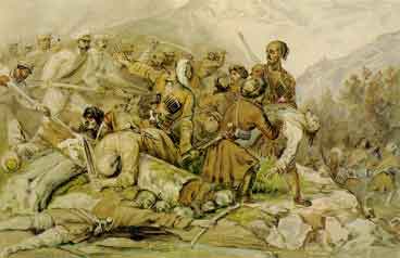 В августе 1840 года Лермонтов совершил еще один поход, участвуя во множестве жестоких стычек с горцами. После краткого отдыха в Пятигорске он снова в отряде Галафеева, теперь в составе кавалерии. Как вспоминали сослуживцы, он удивлял удалью даже старых кавказских джигитов. 10 октября он принял команду от раненого Р.И. Дорохова над группой конных "охотников" (добровольцев), в которую входили разжалованные офицеры, казаки, кабардинцы - люди отчаянной храбрости. "Невозможно было сделать выбора удачнее, - писал сослуживец поэта, - всюду поручик Лермонтов, везде первый подвергался выстрелам хищников и во главе отряда оказывал самоотвержение выше всякой похвалы". Галафеев представил Лермонтова к награде и направил командующему личную просьбу о его переводе в гвардию. Лермонтов не получил наград и не был переведен в гвардию.