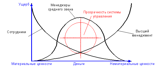 В масштабе компании их возможности безграничны, естественно, если удалось договориться между собой. Зависимость ущерба от субъектов и объектов воровства показана на рис. 1.