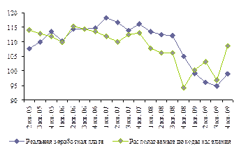 График 5. Динамика реальной заработной платы и реального располагаемого дохода, %