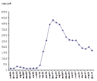 Паника вкладчиков и клиентов банков осенью 2008 года значительно подорвала ресурсную базу российских банков и потребовала значительного рефинансирования со стороны Банка России (График 1). Паника вкладчиков, сначала затронувшая только наиболее пострадавшие от кризиса ликвидности банки, распространилась на другие кредитные учреждения.