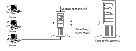 На рис. 1.9 представлен более сложный вариант архитектуры клиент-сервер.