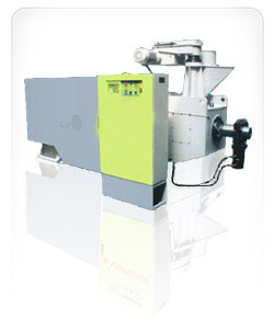 Между бункером приема сырья и шнековым транспортером располагается сортировочная машина, исключающая попадание в шнековый транспортер и барабан крупных отходов древесины и коры.