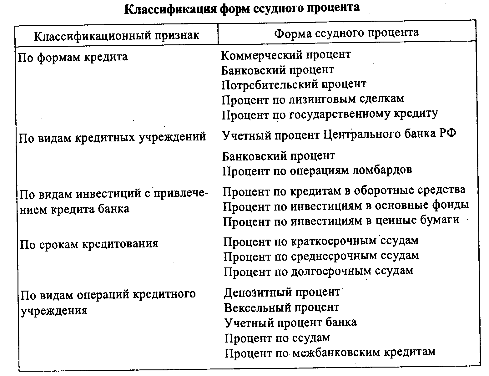 1.2. Ссудный процент как цена ссудного капитала. Ссудный процент - объективная экономическая категория, представляющая собой своеобразную цену ссуженной во временное пользование стоимости. Его возникновение обусловлено наличием товарно-денежных отношений, которые, в свою очередь, определяются отношениями собственности. Ссудный процент возникает там, где отдельный собственник передает другому определенную стоимость во временное пользование с целью ее производительного потребления. Эта стоимость обладает чертами товара. Ее потребительная стоимость (полезность) состоит в производстве прибыли, которая, с одной стороны, составляет доход производителя; с другой - кредитора (в форме процента). Движение ссужаемой стоимости таково: Д-Д', т.е.Д'-Д=∆Д где Д - ссужаемая стоимость, Д - наращенная сумма долга;ΔД – приращение к ссуде, выступающее в виде платы за кредит. Для кредитора цель сделки состоит в получении определенного дохода на ссуженную стоимость; предприниматель привлекает средства также с целью увеличения прибыли. Ее размер зависит от цены продукции и затрат на ее производство, т.е. от себестоимости продукции, представляющей затраты живого и овеществленного труда. Когда предприниматель привлекает заемные средства, то из прибыли он должен уплатить проценты. Если исходить из принципа равного дохода на вложенные средства, то на один рубль заемных средств приходится величина прибыли, соответствующая доходности собственных вложений. Столкновение интересов собственника средств и предпринимателя, пускающего их в оборот, приводит к разделению прибыли на вложенные средства между заемщиком и кредитором. Доля последнего выступает в форме ссудного процента. В экономической литературе советского периода (особенно 20-30-е гг.) ссудный процент чаще всего воспринимался как средство снижения себестоимости продукции. Действительно, ссудный процент включался в себестоимость продукции. Поэтому его трактовка как элемента себестоимости не кажется противоестественной. Тем не менее при данной характеристике ссудного процента теряется его специфика. В основу себестоимости продукции входит не только ссудный процент, но и другие компоненты. Более того, стоимость живого и овеществленного труда имеет более высокий удельный вес, поэтому экономия именно данных издержек представляла бы наиболее ощутимое средство снижения себестоимости товаров. Вряд ли убедительно и определение процента как средства возмещения расходов банка, поскольку оно не характеризует сущности ссудного процента, а сведено лишь к определению результатов одного из участников кредитных отношений. В 80-х гг. в советской экономической литературе главенствующее место заняли теории, определяющие ссудный процент в качестве иррациональной цены кредита. Развитие рыночных отношений в экономике России определило условия для трансформации функций ссудного процента, присущих ему в системе административного управления: стимулирующей и распределения прибыли в более широкую регулирующую функцию, которая содержит элементы стимулирования и распределения. Вместе с тем еще не созданы предпосылки, которые позволили бы проценту в полном объеме реализовать функцию регулятора производства, соответствующую рыночным условиям. Если уровень ссудного процента складывается на осн