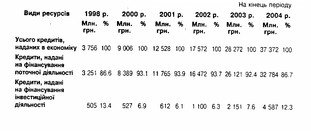 Глава III. Проблемы и перспективы совершенствования кредитно- банковской системы в Украине. В переходной экономике наблюдается существенное ограничение ресурсной базы коммерческих банков, которая в свою очередь, уменьшает масштабы банковского кредитования. Банковское кредитование и получение процентов за кредит является важным источником получения прибылей коммерческим банком, а также главным источником финансирования деятельности предприятий в переходной экономике. Актуальность нашей темы связана с проблемами повышения уровня капитализации банковской системи Украины и обеспечения отечественных предприятий средствами для их бесперебойной и эффективной деятельности, а также с важностью роли, которую сыграет кредит в решении отдельных проблем. Экономическая наука доказала, а хозяйственная практика подтвердила, что кредит является универсальным инструментом распределения и перераспределения национального дохода, финансовых, материальных и трудовых ресурсов, выравнивание уровней рентабельности предприятий на основе переливания капиталов, что способствует прогрессивным структурным сдвигам в народном хозяйстве. Банковский кредит отображает экономические отношения между субъектами ведения хозяйства: кредитором - банком, который предоставляет кредиты, и заемщиком - субъектом кредитных отношений, который получает во временное пользование кредитные средства. В Украине после 1991 года коммерческие банки начали осуществлять как краткосрочное, так и долгосрочное кредитование предприятий разных форм собственности. С переходом к рыночным условиям изменялся состав кредиторов и заемщиков. Основными кредиторами стали коммерческие банки, в том числе прежние государственные, а заемщиками все чаще становились частные и коллективные предприятия, частные предприниматели, отдельные граждане. Конечно, осуществлялось кредитования и предприятий государственной формы собственности. Изменились формы и виды кредитов, а также методы кредитования, когда от кредитования многочисленных отдельных объектов, предусмотренного банковскими инструкциями в советские времена, коммерческие банки перешли к кредитованию субъектов, беспокоясь в первую очередь о своих доходах и возвращениях кредита. Вместо достаточно сложного порядка кредитования, который предусматривал значительные исключения для предприятий отдельных отраслей или подотраслей экономики, кредитование начало осуществляться преимущественно на покрытие дефицита оборотного капитала предприятий. Актуальной является проблема максимально эффективного использования банковских ресурсов. В настоящее время формирование ресурсной базы коммерческих банков является одним из самых важных заданий для обеспечения экономического роста. Банковская система должна владеть совокупностью ресурсов, достаточных для кредитования потребностей субъектов хозяйственной деятельности, формирования соответствующих резервов и поддержки собственной ликвидности. Важность банковского кредитования заключается и в осуществлении инвестиционной деятельности, поскольку предприятия, которые не имеют достаточных финансовых ресурсов для наращивания или обновления основных средств, нуждаются в финансовой поддержке. В свою очередь, коммерческие банки, осуществляя кредитную поли