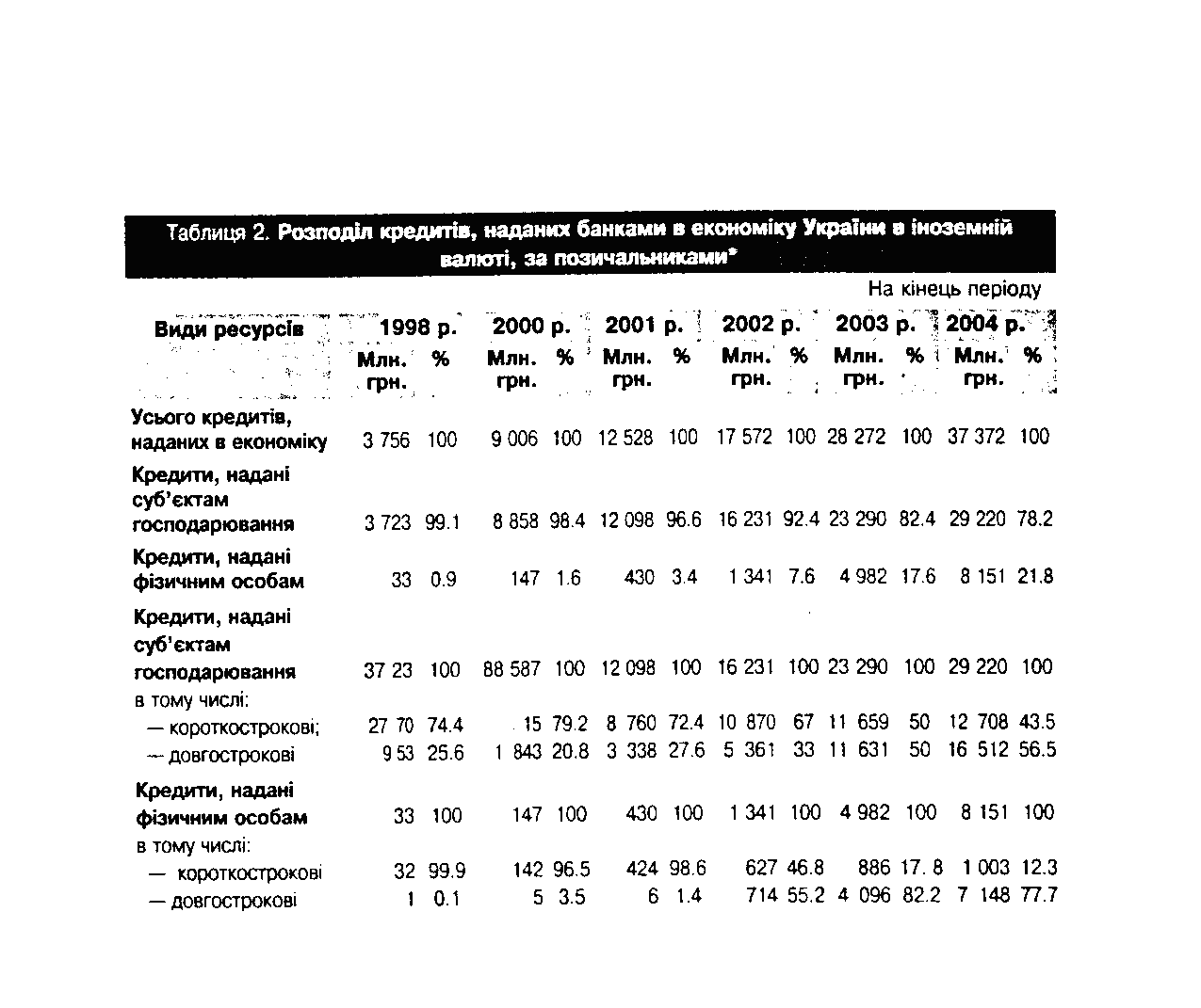 Таблица 5. Розподіл кредитів, наданих банками в економіку України в іноземній валюті, за позичальниками. []