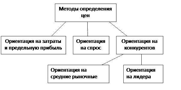 В условиях рыночной экономики успех любого предприятия или предпринимателя во многом зависит от того, как правильно они будут устанавливать цены на свои товары и услуги. Фирма не просто устанавливает ту или иную цену – она формирует целую систему цен, которая охватывает разнообразные товары в рамках товарного ассортимента и учитывает различия в издержках по реализации товара в разных географических районах, различия в уровнях спроса, распределении покупок по времени и т.д. При этом фирма осуществляет свою деятельность в обстановке постоянно меняющегося конкурентного окружения, нередко сама выступает с инициативой изменения цен и может отвечать на ценовые действия конкурентов. За исключением работы на рынках с чистой конкуренцией, фирмам необходимо иметь упорядоченную методику установления исходной цены на свои товары. В практике маркетинга существуют различные методы определения цены (рис. 1)