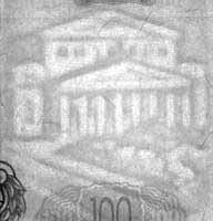 - фоновая сетка (светлые и тёмные ромбики по всему полю купюры). |