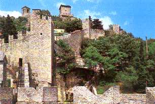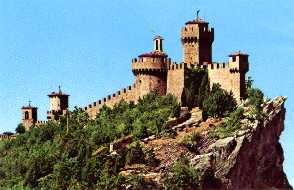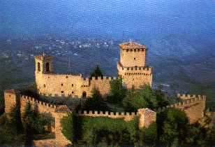 На вершине горы Титано возвышаются три крепости, или, как их ещё называют, башни - Гуаита, Честа и Монтале, которые в прошедшие века стали грозной защитой свободы и независимости санмаринцев. Никому не удалось сломить их стойкость и завоевать эти укрепления; основным врагом, приведшим к почти полному их разрушению, стало беспечное отношение санмаринцев к этим достопримечательностям. Даже окружные оборонительные стены были разграблены на камни, служившие для мощения дорог и постройки жилых зданий. Только в начале этого века, с возрождением национального самосознания, были начаты работы по реставрации, закончившиеся к концу двадцатых годов.