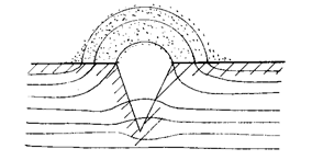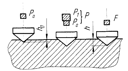 алмазный наконечник вдавливается в испытуемый образец под действием двух последовательных прилагаемых нагрузок: А -