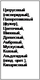 · Цитрусовая (гисперидная) – запахи прохладные, звучные, светлые («О Соваж»; «Гермес», «Этернити» для мужчин);