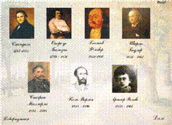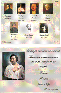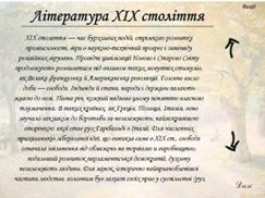 На сторінках про письменників, крім біографії та текстів творів письменника, є історичні довідки про події, що відбувалися, коли творив письменник, матеріали до написання творів (мал. 4). Музичне оформлення посібника класичними творами також дозволяє поринути до епохи ХІХ століття. Обробка аудіальної інформації є розділом вивчення курсу Web-дизайну та сучасним напрямком інформаційних технологій.