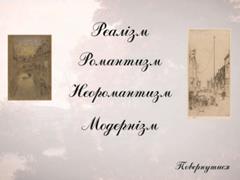 Невід’ємною частиною вивчення курсу літератури є вивчення теорії літератури. Розділ посібника «Літературні течії» включає опис таких течій, як реалізм, романтизм, неоромантизм та модернізм (мал. 5). Опис кожної з течій оформлений картинами французьких митців, що творили у тому ж напрямку, та французькими музичними творами ХІХ століття.