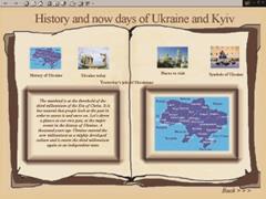 Якщо ви завітаєте до будинку, в якому є інформація про Україну та Київ, ви потрапляєте у книгу (мал. 2), з якої, знову ж за допомогою гіперпосилань можно дізнатись про історію України, про сучасну Україну, багато тут інформації про Київ (докладніше структура сторінок про Київ буде описана нижче), про професії українців, тут є і карта України.