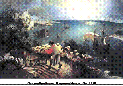 ІV. Позднее Возрождение (вторая половина XVI в. — начало XVII в. ), характеризующееся кризисом гуманистического мировоззрения. В эти годы в Европе усиливается упадок экономики и торговли, католицизм ведёт активную борьбу с идеями гуманистов. Многие учёные и писатели осознают, что их идеалы разбиваются о жестокую действительность, что вера в победу добра над злом претерпевает крушение. Трагизм жизни находит своё отображение в искусстве. Яркое подтверждение тому — трагедии Шекспира и роман Сервантеса «Хитроумный идальго Дон Кихот Ламанчский », картины испанца Эль Греко , немца Альбрехта Дюрера , нидерландца Питера Брейгеля .