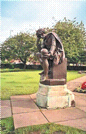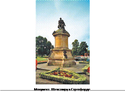 Øåêñïèðó è åãî ãåðîÿì ïîñâÿùåíî ìíîæåñòâî ðàçíîîáðàçíûõ ïàìÿòíèêîâ è íà åãî ðîäèíå, è çà åё ïðåäåëàìè. Ñðåäè íàèáîëåå èíòåðåñíûõ — ìîíóìåíòàëüíûé ñêóëüïòóðíûé àíñàìáëü, îòêðûòûé â 1888 ã. â Ñòðýòôîðäå (ñêóëüïòîð — Ðîíàëüä Ñàòåðëåíä Ãàóýð ). Âåëèêèé äðàìàòóðã è ïîýò âîññåäàåò íà âûñîêîì ïîñòàìåíòå, óêðàøåííîì ëàâðîâûìè âåíêàìè. Âîêðóã íåãî — ôèãóðû ÷åòûðёõ ëèòåðàòóðíûõ ãåðîåâ — Ëåäè Ìàêáåò, ðûöàðÿ-øóòà Äæîíà Ôàëüñòàôà, þíîãî ïðèíöà — áóäóùåãî êîðîëÿ Ãåíðèõà V — è Ãàìëåòà, ñêëîíèâøåãîñÿ íàä ÷åðåïîì áåäíîãî Éîðèêà. Âûáîð ýòèõ ïåðñîíàæåé íå ñëó÷àåí. Ñêóëüïòîð òàêèì îáðàçîì ñòðåìèëñÿ ïîä÷åðêíóòü ÷åòûðå ãðàíè äàðîâàíèÿ Øåêñïèðà — ãåíèàëüíîãî ñîçäàòåëÿ òðàãåäèé, êîìåäèé, ëþáèòåëÿ èñòîðèè è ôèëîñîôèè.