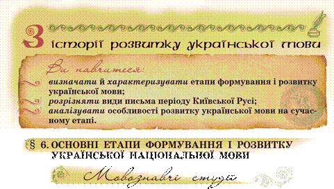 ЕТАПИ РОЗВИТКУ УКРАЇНСЬКОЇ МОВИ