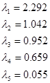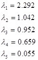 Собственные числа матрицы =2.292, =1.042, =0.952, =0.659, =0.055.