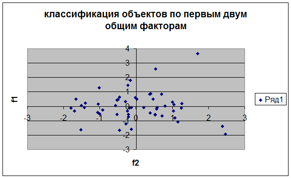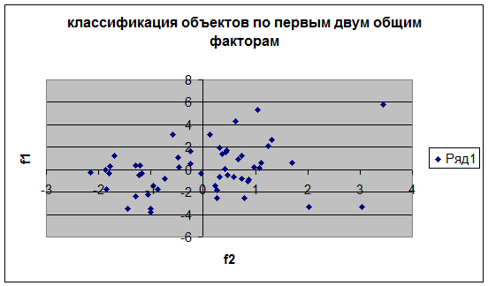 - на основе матрицы F провести графически классификацию объектов по первым двум общим факторам;