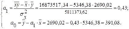 Т.е. с доверительной вероятностью p=1-α=1-0,05=0,95 можно предполагать, что прогнозное значение потребительских расходов при величине дохода, равной 10000 рублей, составит около 4691,08 рублей.