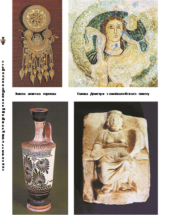 Україні дістався й античний театральний спадок від греків, що припливли морем у кінці VІІ – на початку VІ ст. до н.д. і заснували теат ри в грецьких колоніях Ольвії, Херсонесі, Феодосії, долучивши місцеве населення до умовної естетики античного театру. Археологи виявили поблизу сучасної Керчі уламки споруди амфітеатру і майстерню, де збереглися залишки печей для обпалювання і відливання теракот. Серед цих теракот – маски акторів у комедійних і трагедійних ролях.