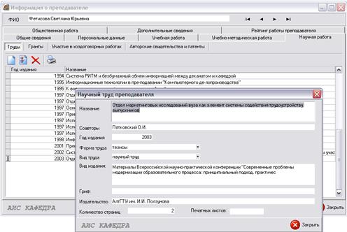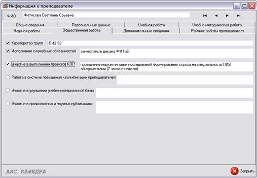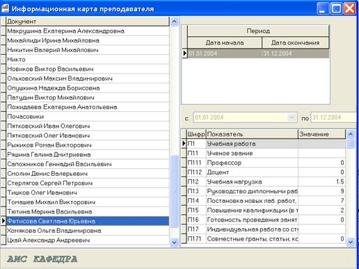 Объект дипломного проектирования – автоматизация деятельности преподавателей кафедры «Информационные системы в экономике».