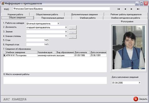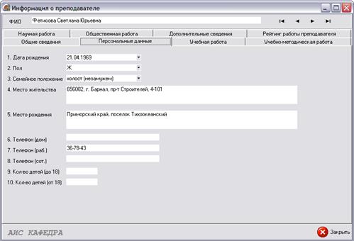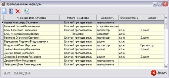 - спроектировать и реализовать модуль «Преподаватели» информационно-аналитической системы «Кафедра»;
