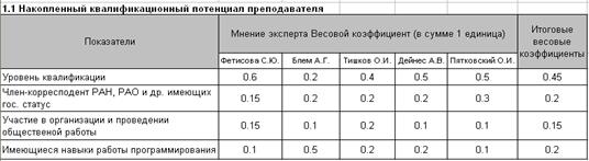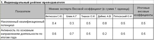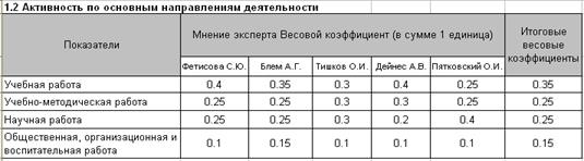 1.3 Рейтинговая методика оценки качества работы преподавателей