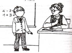 - учительница ругает мальчика, потому что он ничего не может решить у доски, поэтому у него грустное выражение лица;