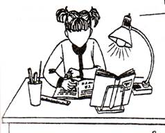 - мальчик выполняет домашнее задание, но задали слишком много, и он боится что не успеет все сделать ( класс занимается по системе Занкова, домашнее задание задается);