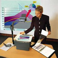 Графопроекторы позволяют проводить занятия и презентации при дневном освещении в помещениях любого размера. Они разработаны с учетом последних технологических достижений, имеют отличный современный дизайн и прекрасно вписываются в интерьер любого помещения. Могут работать 24 часа без выключения. Они удобны для: - представления статической информации – графиков, схем, чертежей, таблиц; - представления графической информации; - повторения пройденного материала. Высоконадежные и недорогие графопроекторы, проецируют изображение на большой экран с цветных и монохромных пленок формата А4 (297 х 210 мм). На пленки изображение наносится с помощью лазерного или струйного принтера, копировального аппарата или вручную цветными фломастерами. Каждому типу печатного или копировального устройства соответствует строго определенный тип пленки.