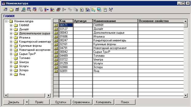 Рис. Справочник «Номенклатура»