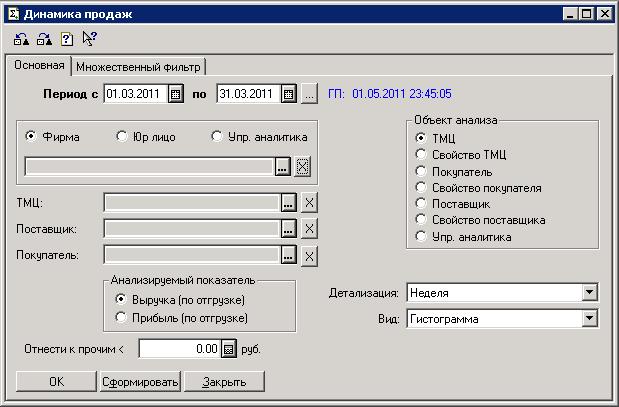 Отчет предназначен для получения информации о динамике продаж за выбранный период. Период анализа устанавливается в настройках отчета.