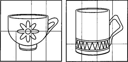 Логопед. Давайте действительно попробуем украсить тот эти чашки. Для этого сначала мы должны обмакнуть кисти в клей и смазать всю поверхность чашек клеем, а потом выложить из чечевицы, пшена и гречи узоры. Для того чтобы помочь вам украсить чашки, я приготовила вот такие красивые фотографии.