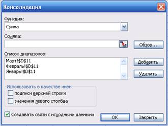 ») получена таблица путем консолидации. Выбраны Данные | Консолидация