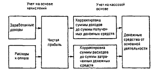 Определение движения денежных средств в результате текущей деятельности. Отчет о прибылях и убытках показывает поступление и выбытие денежных средств в результате этой деятельности. Причина этого заключается в том, что отчет о прибылях и убытках составляется на основе системы начислений, согласно которой доходы признаются даже в случае, когда деньги еще не поступили, а расходы очень часто считаются понесенными, хотя денежных средств, явившееся результатом текущей деятельности, необходимо трансформировать данные отчета о прибылях и убытках с системы начислений в кассовую систему. При этом используется корректировки, при которых доходы признаются только в случае, если осуществлялись денежные выплаты, пример на рисунке 2.