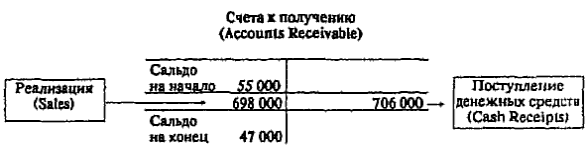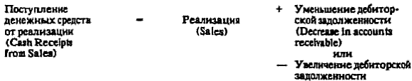 Взаимосвязь между реализацией, изменениями в состоянии дебиторской задолженности, или счетах к получению и поступлением денежных средств от реализации может быть отражена следующей формулой на рисунке 5.