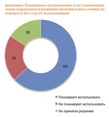 Из полученных с помощью коммуникационной аналитики данных ясно, что компании используют не весь спектр возможных инструментов. Это происходит потому, что рынок сетевых ресторанов в данный момент не насыщен игроками, а конкуренция среди представителей бизнеса не является жесткой. Кроме этого, используемые коммуникационные инструменты для продвижения брендов в большинстве случаев являются бессистемными: у 68% компаний отсутствует единая стратегия продвижения брендов, которая должна включать в себя четкое позиционирование с набором определенных информационных посылов для ЦА и используемых в соответствии с этим коммуникационных инструментов.