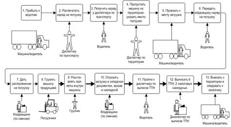 Процесс погрузки продукции на автотранспорт (вариант до реинжиниринга)