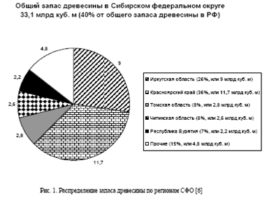Сибирский федеральный округ находится на втором месте по площади нарушенных экосистем после Приволжского федерального округа и на первом месте по объему выбросов от стационарных источников. В то же время Сибирский федеральный округ занимает второе место по площади сохраненных экосистем после Дальневосточного, первое место – по годовому приросту древесины и после Центрального и Приволжского округов по смертности, обусловленной экологическими причинами. Анализ доходов бюджетов от заготовки древесины в большинстве субъектов РФ СФО показал их незначительность на фоне достаточно больших запасов (рис. 1). Это указывает на то, что средообразующая функция лесных экосистем значительно важнее, чем источник древесины, но в отсутствие официальной экономической оценки она остается незамеченной и практически не рассматривается в лесных планах регионов.