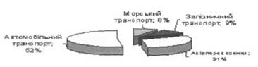 Большинство мексиканских компаний осуществляют перевозку своей продукции с помощью собственного парка транспортных средств, обращая главное внимание на экономию расходов, а не на своевременность доставки и общую эффективность. В результате средняя доля расходов на обращение в стоимости товаров в Мексике достигает 8% против 5% в более развитых странах. В структуре грузооборота Мексики существенно преобладают перевозки автомобильным (80, 3%), а также железнодорожным (9, 9 %) и водным видами транспорта (9, 0 %) (рис. 16).