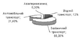 На долю грузовых автомобильных перевозок приходится 90% совокупного грузооборота транспортной системы страны, суммарные продажи сектора в 2005 г. составили 26 млрд. долл. США. Быстро растущей подотраслью канадской логистической индустрии является курьерская доставка с оборотом 3, 5 млрд. долл. США в 2005 г. Таким образом, в структуре грузооборота Канады преобладают перевозки железнодорожным (66, 3%) и автомобильным (21, 4%) видами транспорта (рис. 14)