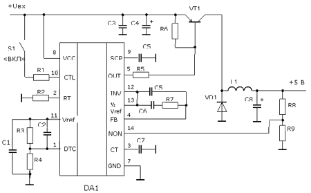 Встроенная схема защиты от коротких замыканий и от пониженного входного напряжения.