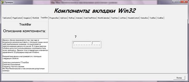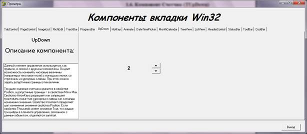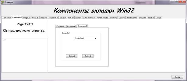В программе-самоучителе в примере использования данного компонента использованы 3 вкладки для демонстрации его свойств.