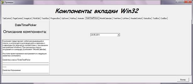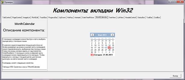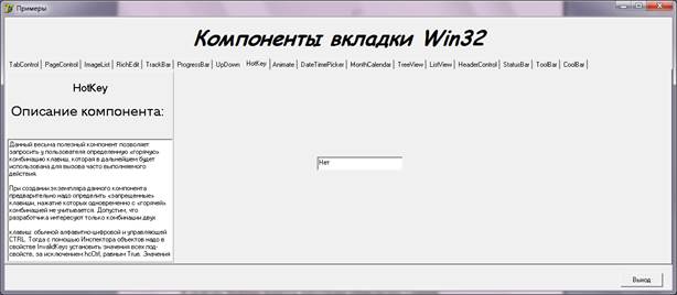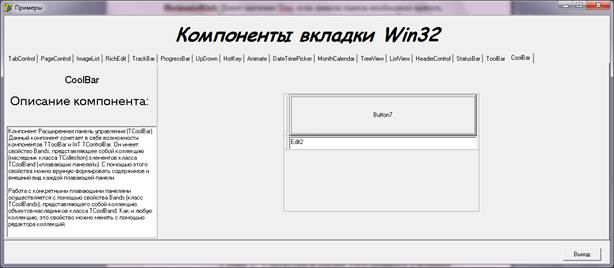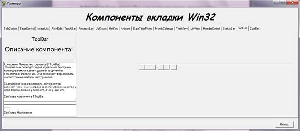 В программе-самоучителе в примере использования данного компонента использованы 4 вкладки для демонстрации его свойств.