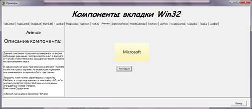 Этот компонент незаменим при создании приложений, в которых производится работа с графическими изображениями. Он позволяет хранить наборы картинок фиксированного размера, обращаться к ним по номерам и осуществлять вывод изображений на экран различными способами. В частности, при реализации различных анимационных эффектов может использоваться «прозрачный» цвет.