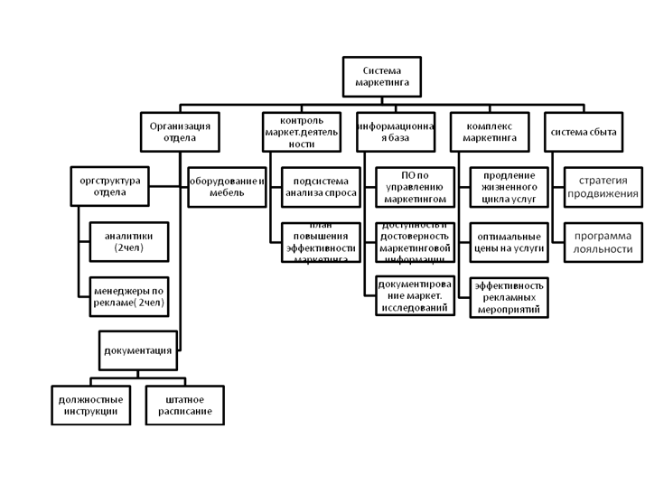 - постановка подсистемы контроля маркетинговой деятельности; - повышение обеспеченности маркетинговой информацией;