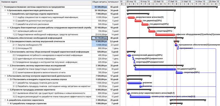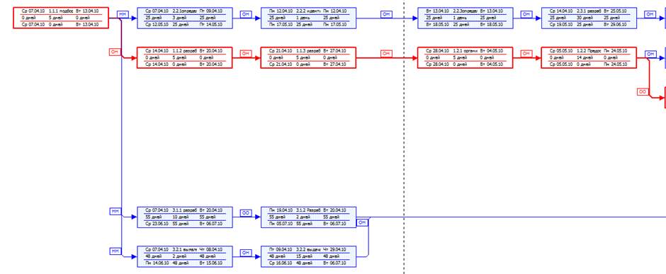 2. Структуризация проекта, которая содержит дерево целей, дерево работ и ресурсов, структуру продукта проекта, оргструктуру проекта, график ганта и сетевой график проекта, бюджет проекта. В завершении дается оценка эффективности проекта и проводится анализ чувствительности.